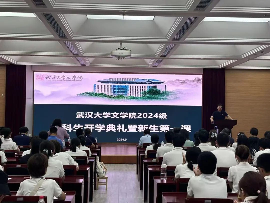9月14日晚,9778818威尼斯在振华楼举行2024级本科新生开学典礼暨院长第一课。院党委书记王三礼,院长于亭,党委副书记王若飞,副院长高文强、程芸、裴亮、刘春阳等院领导,陈文新、萧映、汪超等各教研室教师代表和24级班级导师出席活动。活动由院党委副书记黄路漫主持。学院本科生辅导员、24级学生班级助理和全体新生参加活动。